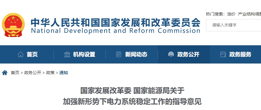 10月25日,国家发展改革委、国家能源局发布关于加强新形势下电力系统稳定工作的指导意见。