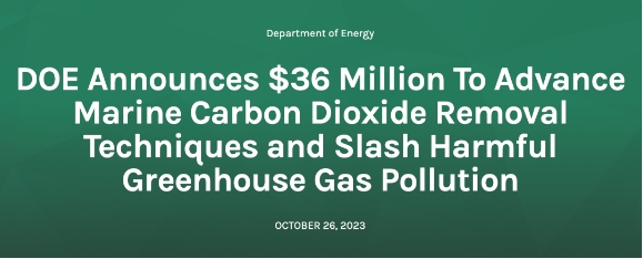 美国能源部(DOE)宣布为8个州的11个项目提供3600万美元,以加快海洋二氧化碳去除(mCDR)捕获和储存技术的发展,特别是mCDR的测量、报告和验证(measure, report, and validate 、MRV)。推进mCDR等创新技术对美国政府应对气候危机和到2050年实现净零排放的努力至关重要。
