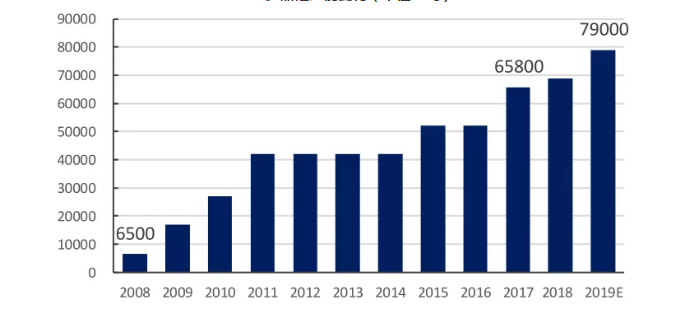 2018年底,全球多晶硅的名义产能为59.8万吨,其中,国内多晶硅企业的名义产能为38.8万吨/年,海外产能为21万吨;2019年上半年,全球多晶硅的名义产能为64.2万吨,其中国内的多晶硅的名义产能为43.3万吨,海外产能为20.9万吨,全球多晶硅产业向中国转移的趋势越发明显。