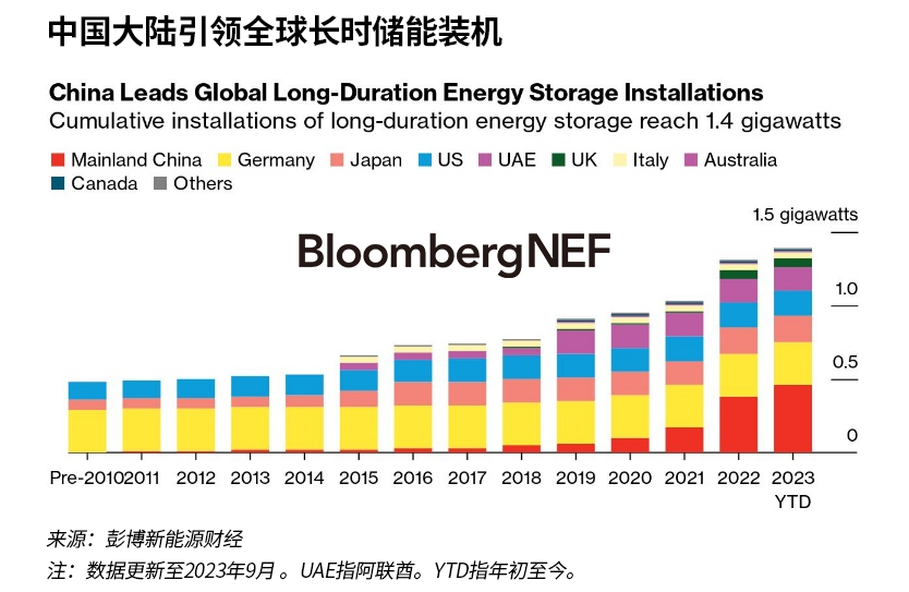 根据彭博新能源财经的数据,截止到今年9月,全球已经投产的长时储能达1.4GW/8.2GWh,而储备项目已经达到33GW/156GWh,其中,中国是最大的市场,占储备项目装机容量的92%。
