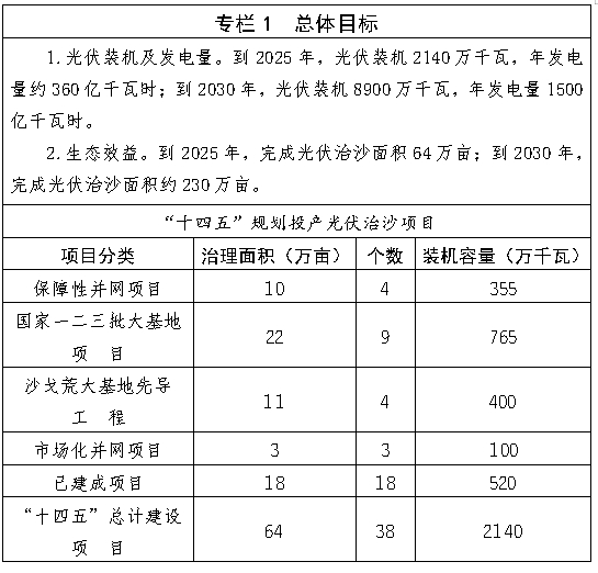 内蒙古光伏治沙方案:总规划89GW,“十四五”投产21.4GW