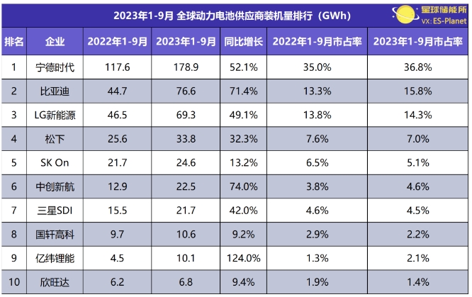 就增速来看,2023年1-9月,LG新能源(在中国以外市场的)销售额较2022年同期增长不足50%,宁德时代的海外销售额却增长了104.9%,市场占有率同比增长近7个百分点。