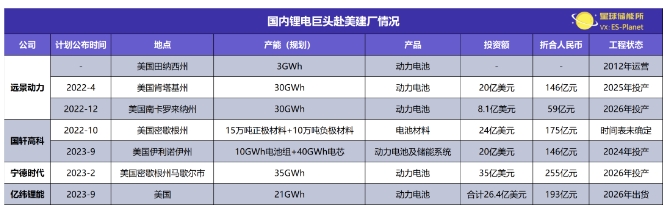 其中,仅斥巨资在美国建厂的企业就有宁德时代、远景动力、国轩高科、亿纬锂能四大电池巨头。