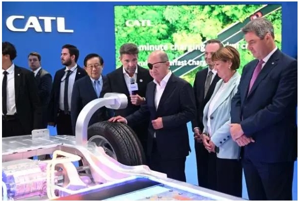 德国总理朔尔茨参观宁德时代神行超充电池展台