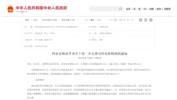图3. 国家发改委关于进一步完善分时电价机制的通知