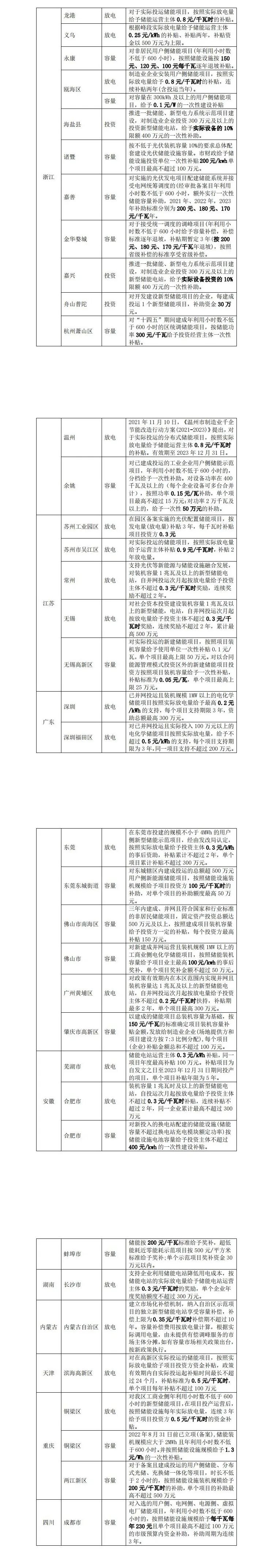 图8. 各省用户侧储能补贴政策