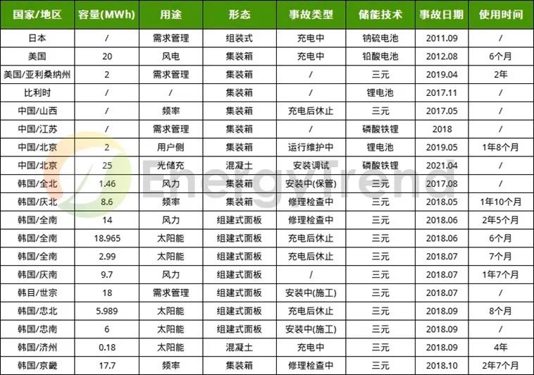 图说:部分储能电站爆炸事故详情