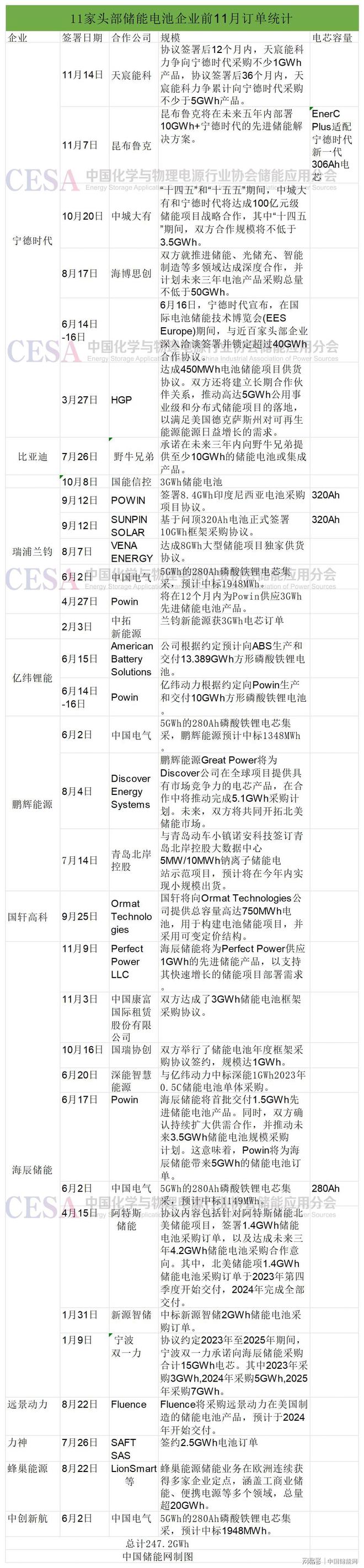 频频斩获!11家储能电池头部企业今年拿下近250GWh订单
