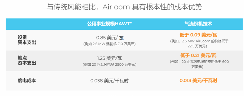 使用更少的材料意味着更低的资本成本——设计成本不到传统涡轮机的十分之一,而且安装成本也更低,一个完整的风力发电场的安装成本预计不到传统风力发电项目的25%。