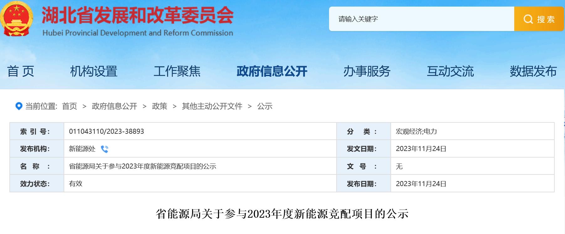 6.9GW!湖北省2023年新能源竞配项目公示