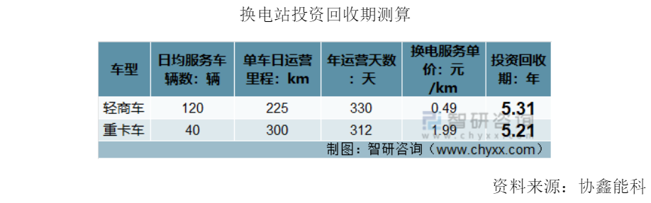 换电站的盈利模式可知,影响换电站盈利能力的主要因素为换电站的服务次数及电动车的行驶里程。根据协鑫能科公告,轻商车投资回收期为5.31年,重卡车5.21年,如服务车辆、运行里程不达标,投资回收期将继续拉长。因此行业投资面临较大的投资风险。