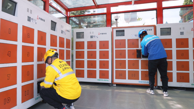 ▲外卖骑手在中国铁塔的智能换电柜扫码,取用满电的电池,快捷续航。