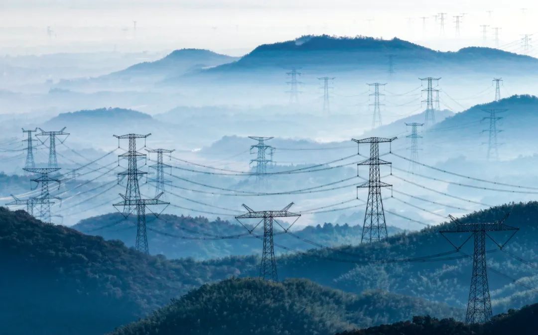 2023年11月21日,安徽省芜湖市繁昌区孙村镇境内“西电东送”特高压工程在晨雾中忽隐忽现,宛若仙境。图/中经视觉 鲁君元 摄