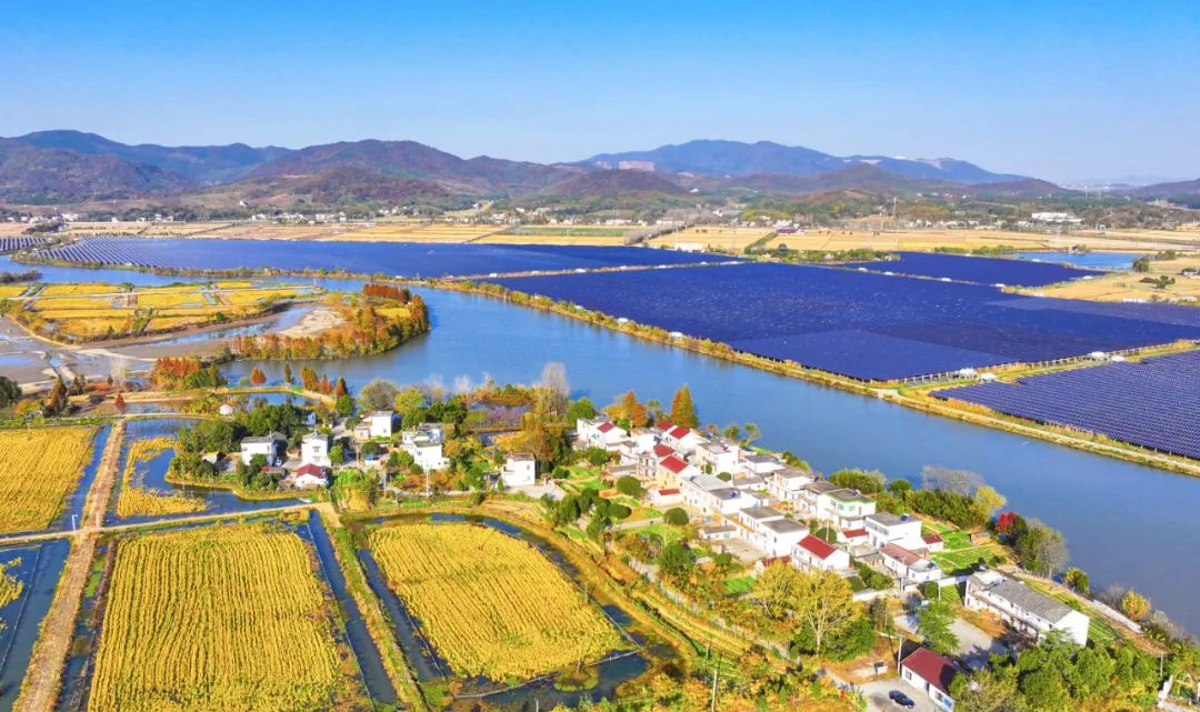 2023年11月24日,安徽省芜湖市繁昌区平铺镇岱湖滩渔光互补光伏电站。图/中经视觉 鲁君元 摄