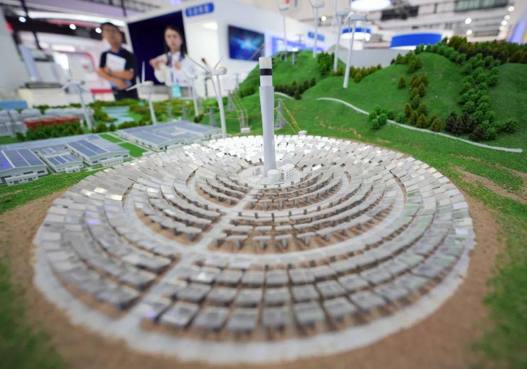 2023年8月29日,观众在2023绿色低碳高质量发展大会上观看可再生能源体系模型。图/中经视觉 唐克 摄