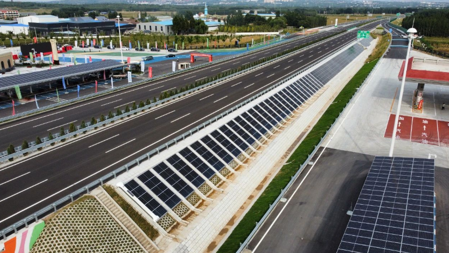 在荣乌高速荣成至文登段,由山东高速集团建设的全国首个高速公路边坡光伏试点项目已平稳运行一年多。该项目装机容量2.01兆瓦,2022年全年累计发电280万度,在全国范围形成显著示范效应。以此为基础,山高集团总结成功经验,编制发布了全国首个高速公路边坡光伏技术标准。