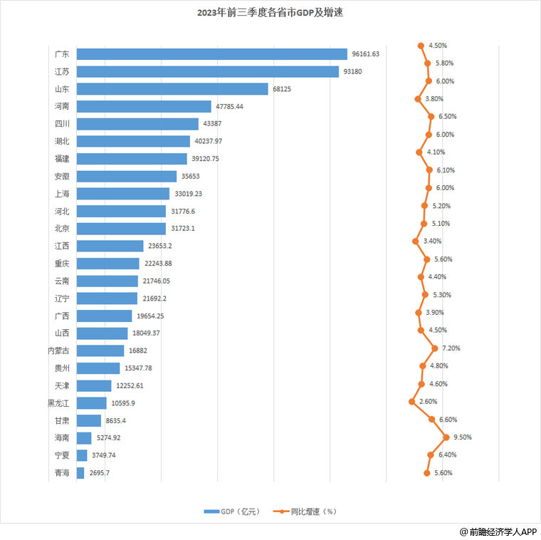 从总量来看,广东与江苏之间的差距正逐渐缩小。尤其是今年前三季度,两省之间的GDP差额已经从4年前的4500亿缩小到不足3000亿,“经济第一大省易位”的说法甚嚣尘上。