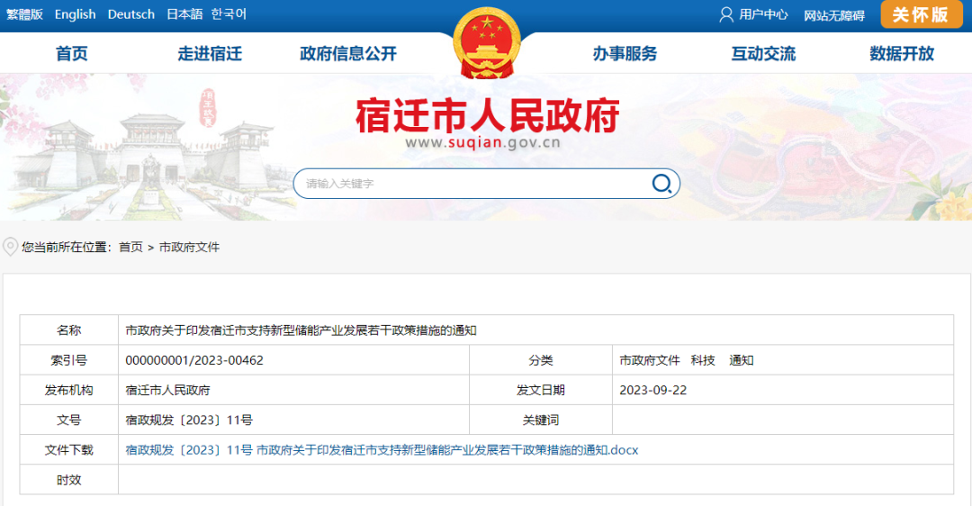 今年9月,宿迁政府迅速反应,出台了《宿迁市支持新型储能产业发展的若干政策措施》(以下简称《措施》),只为积极抢占新型储能产业制高点。