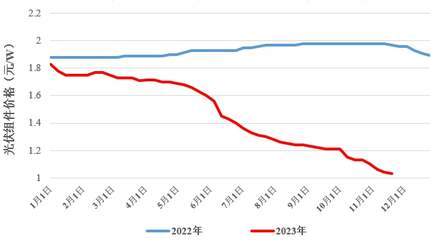 PVInfolink去年11月底报价为1.96元/W,今年为1.03元/W,下跌48%;