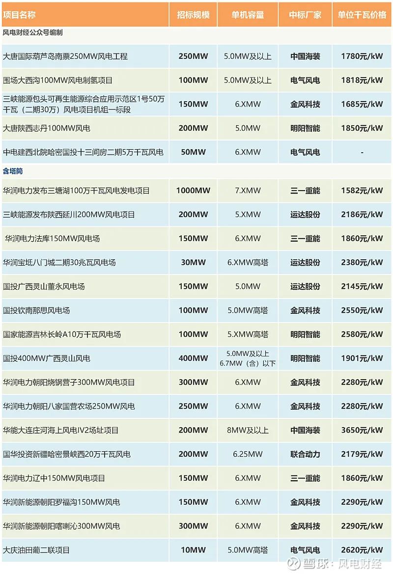 各家的报价如下表所示。含塔筒的报价区间1338~1722元/kW之间;在按照300元/kW左右保守估算塔筒价格,此次裸机报价最低价约1038/kW,刷历史新低!