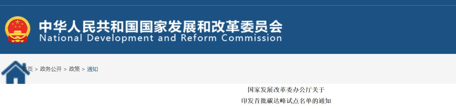 日前,国家发改委引发《国家发展改革委办公厅关于印发首批碳达峰试点名单的通知》,对包括河北、内蒙等16个省自治区在内的25个城市、10个园区确定为首批碳达峰试点城市和园区。