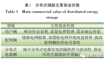 然而,分布式储能的应用场景丰富并不意味着这些价值都可以被大规模的商业化。因此,需要从政策层面以及项目实践经验上论述分布式储能的商业价值,表1从用户侧、配网侧、分布式电源侧分析了分布式储能主要价值点。