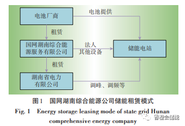 在工商业用户市场,美国的AMS公司向用户提供储能租赁服务以帮助用户节省电费支出。针对新能源消纳空间不足以及新能源发电企业自配储能困难的问题,国网湖南综合能源公司于2020年11月发布储能设备租赁招标公告,首创电池租赁模式,该运营模式如图1所示。