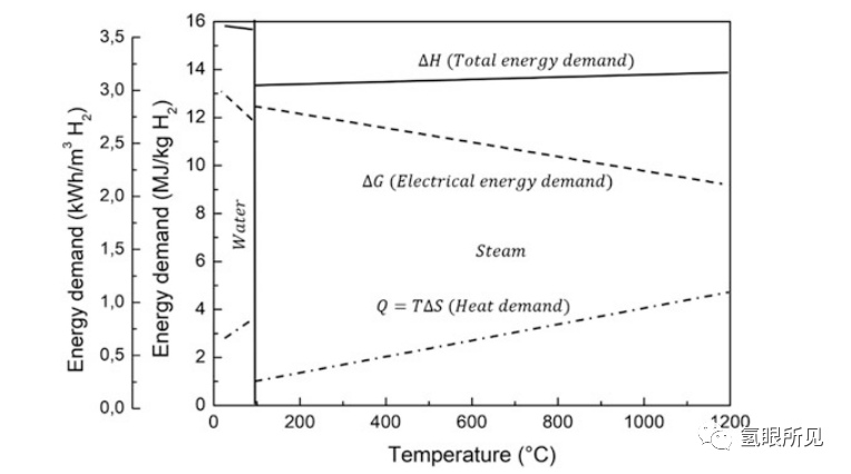 图1:水/蒸汽电解的能量需求