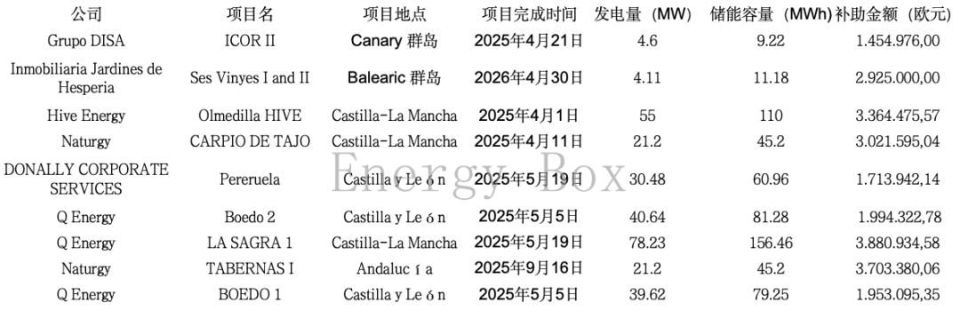 ---2023年11月,西班牙政府IDAE公布了授予补贴共1.58亿欧元的34个混合储能项目名单。