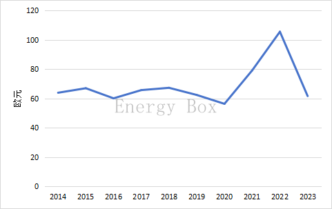 自2014到2023年,除俄乌战争影响2022年能源危机导致电费大幅上涨之外,西班牙户用年平均电费在56.28欧元至79.11欧元(PVPC电价市场)。