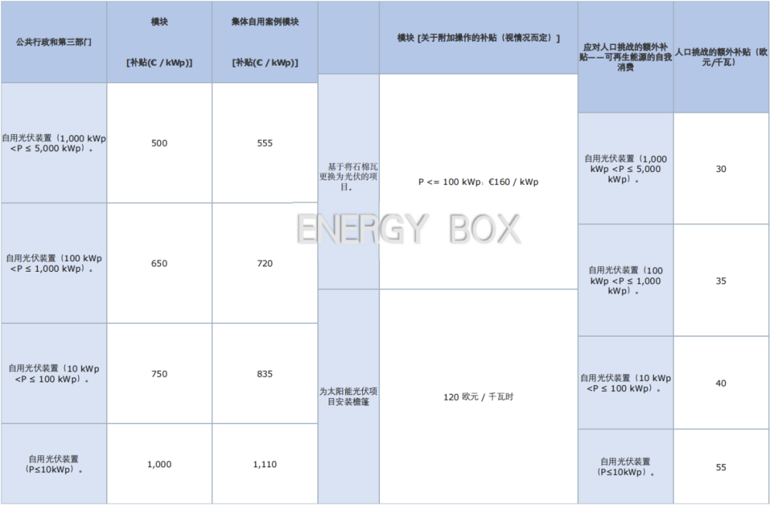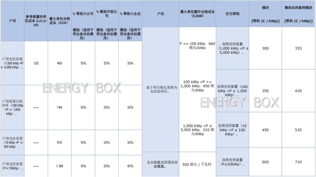 ---2021年6月,政府批准了第477/2021号皇家法令,授权向西班牙自治区给予4.5亿欧元,旨在为以下领域的自发自用式光伏领域提供补助。