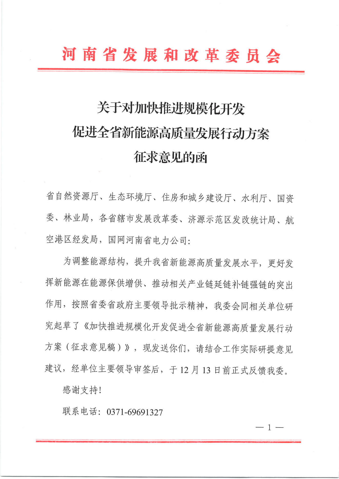 近日,河南省发改委发布《关于对加快推进规模化开发 促进全省新能源高质量发展行动方案征求意见的函》。