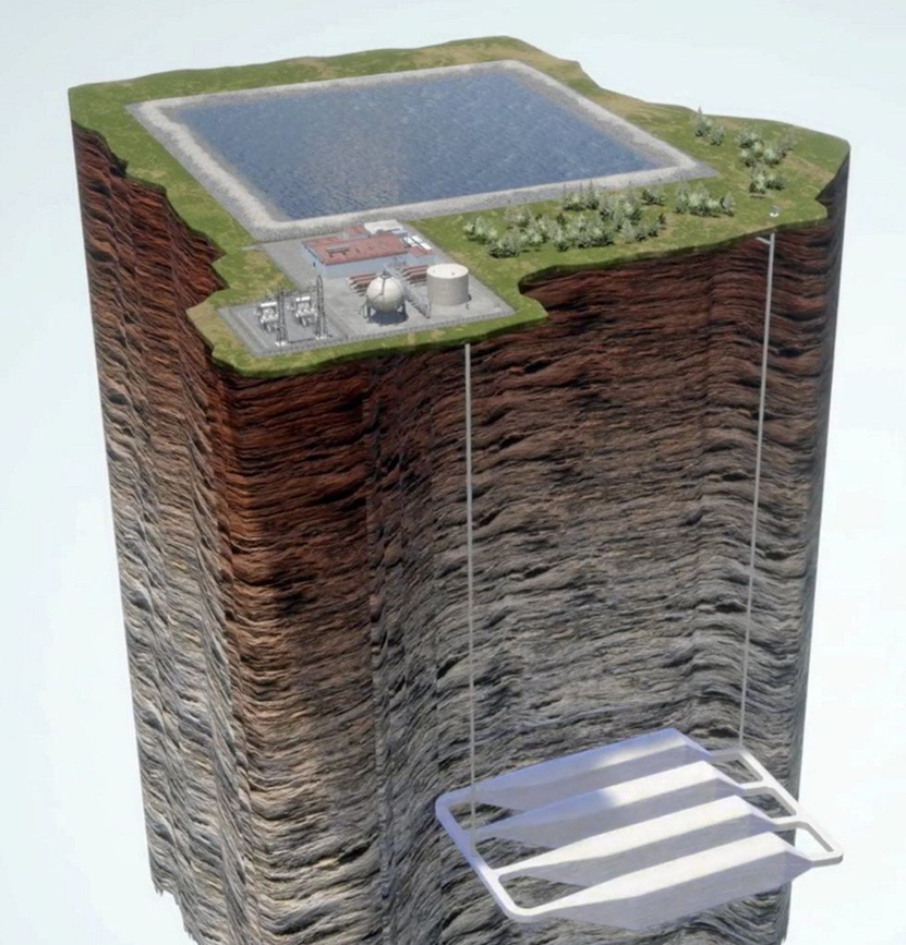 当需要能源时,水会从竖井涌回,迫使空气上升,与储存的热量重新结合,为涡轮机提供动力。