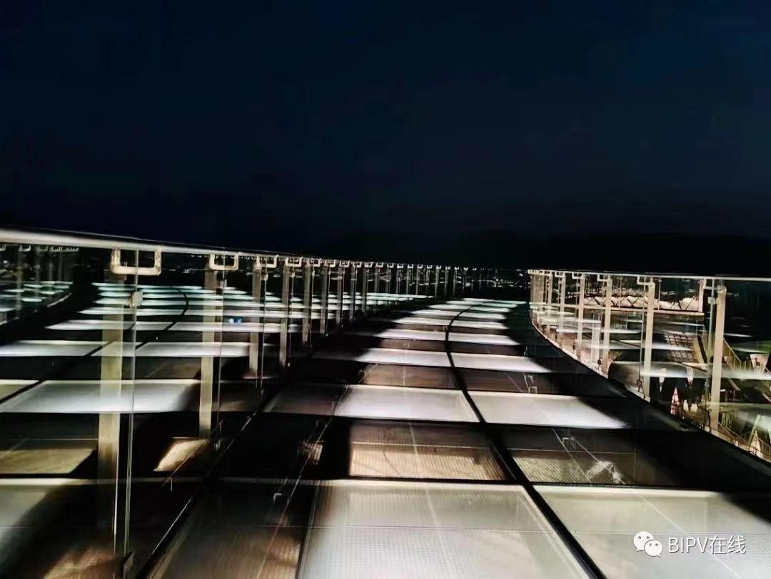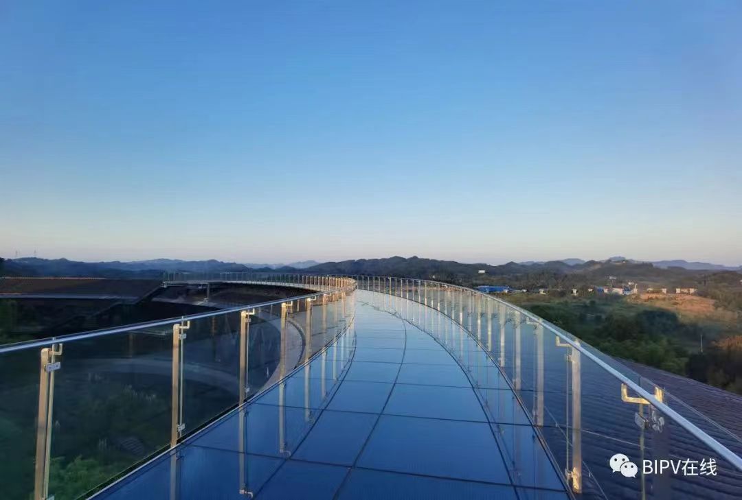 这条光伏玻璃栈道,是碲化镉光伏发电玻璃建筑材料在建材光伏一体化项目中的又一次创新应用。它将光伏发电建材与建筑完美地融为一体,为人们呈现出了一幅美妙的画卷,展示了光伏科技与建筑之美的和谐融合。