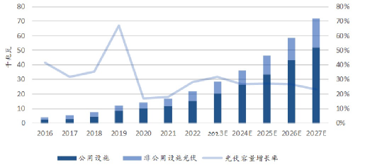 如上图所示,中东和非洲的光伏增长潜力,2023E-2027E期间,公用事业光伏年均复合增长率约为25%。