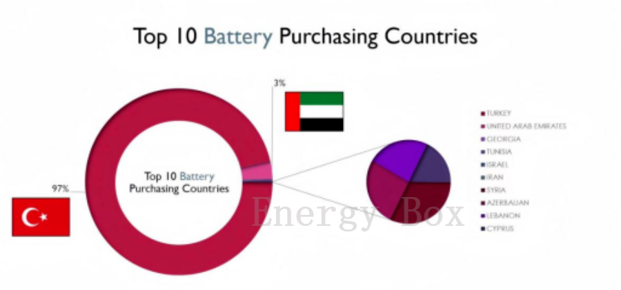 中东市场2021年7月-2022年7月电池购买国Top10: