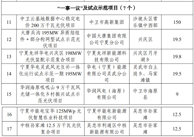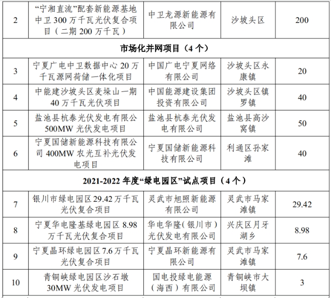 国家大型光伏基地项目、2021-2022年度“绿电园区”试点项目、市场化并网项目、全额自发自用离网项目、“一事一议”及试点示范项目等。