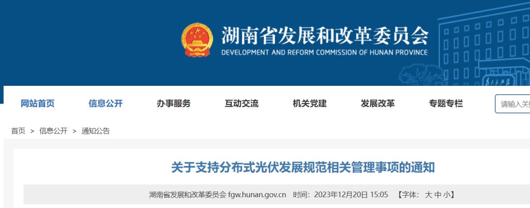 日前,湖南省发改委、国家能源局湖南监管办公室、国网湖南省电力公司联合印发《关于支持分布式光伏发展规范相关管理事项的通知》。