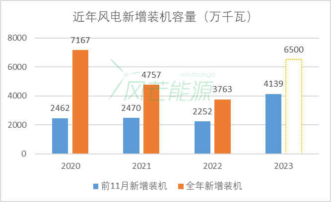 预测,2023年全国风电新增装机容量将达到6500万千瓦以上。