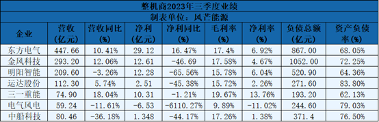 根据上市整机商2023年前三季度业绩报,大多整机商营收、净利呈同比下滑态势。风芒能源预测,2024年整机商内卷将进一步加剧,部分小型整机商或将退出历史舞台。