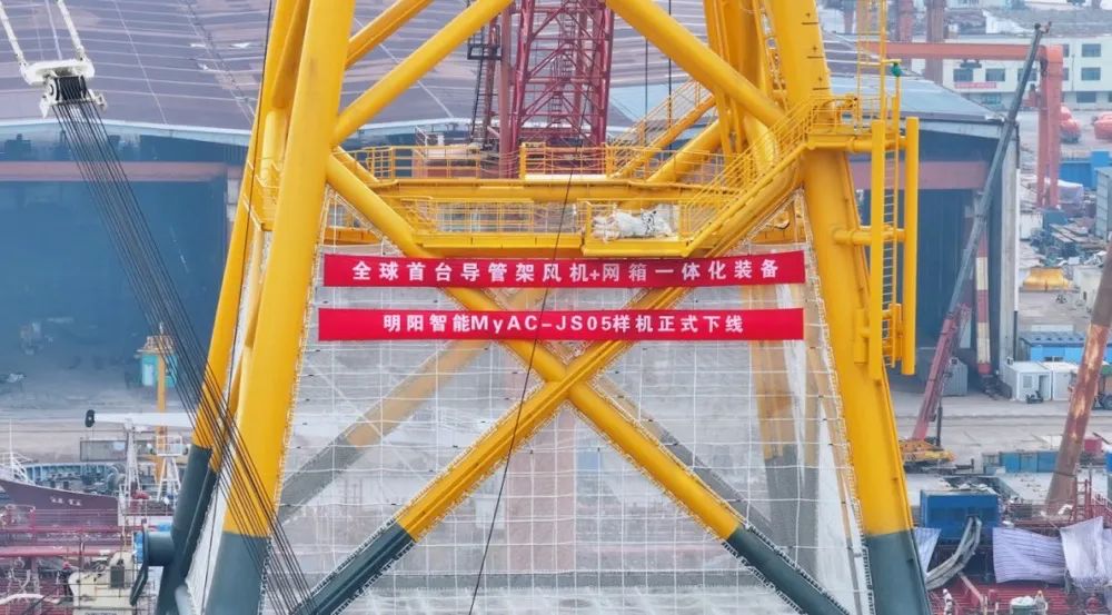 7月10日,由明阳智能自主研发设计的全球首台“导管架风机+网箱”风渔融合一体化装备MyAC-JS05在浙江舟山正式下线,并预计于7月下旬投运于全国首个“海上风电+海洋牧场+海水制氢”融合项目——明阳阳江青洲四海上风电场项目。