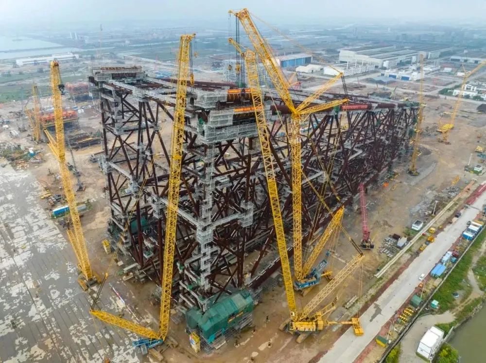 11月21日,由海油工程承建的亚洲第一深水导管架“海基二号”在广东珠海成功封顶,它的完工一举刷新了高度和重量的两项亚洲纪录,总高度338米,重量3.7万吨,应用于距离香港东南约220公里、水深约325米的海域实现亿吨级深水老油田—流花11-1/4-1油田的二次开发。