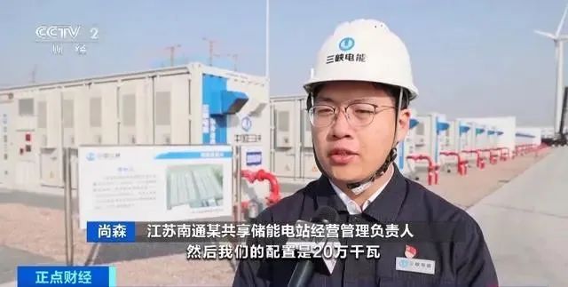 江苏南通某共享储能电站经营管理负责人尚森:从规模来看,目前是华东最大的一个大型共享储能电站,我们的配置是20万千瓦、40万千瓦时。这就代表一个小时内可以充20万度电,充满是40万度,到需要放电的时候也可以放出相应的电量。