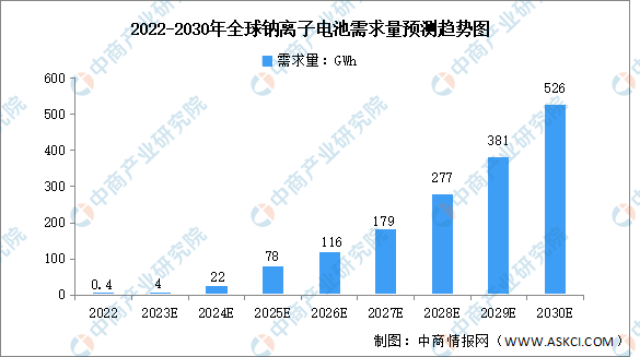 根据中商产业研究院的统计,目前,我国有部分企业开始小批量生产钠离子电池,但尚未大规模产业化,产业化初期成本优势不足,2022年需求量约为0.1GWh。