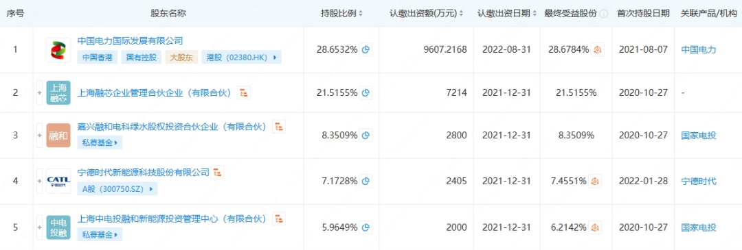 其中,2021年9月,中国电力(国家电投常规能源业务核心子公司)首次对启源芯动力进行战略融资,金额未披露。目前,中国电力在启源芯动力的持股比例约28.65%,为最大股东。
