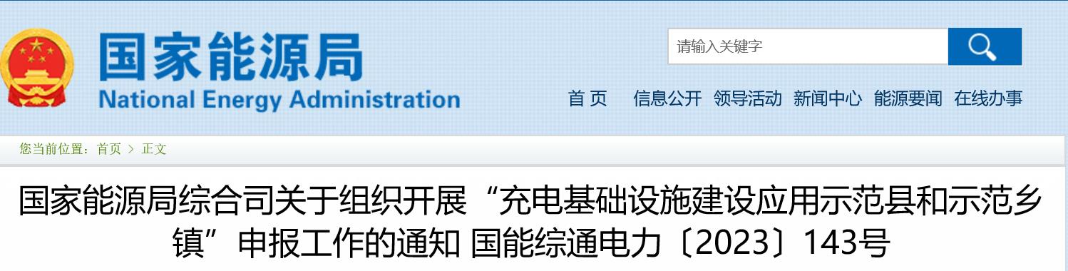 日前,国家能源局发布《关于组织开展“充电基础设施建设应用示范县和示范乡镇”申报工作的通知》。