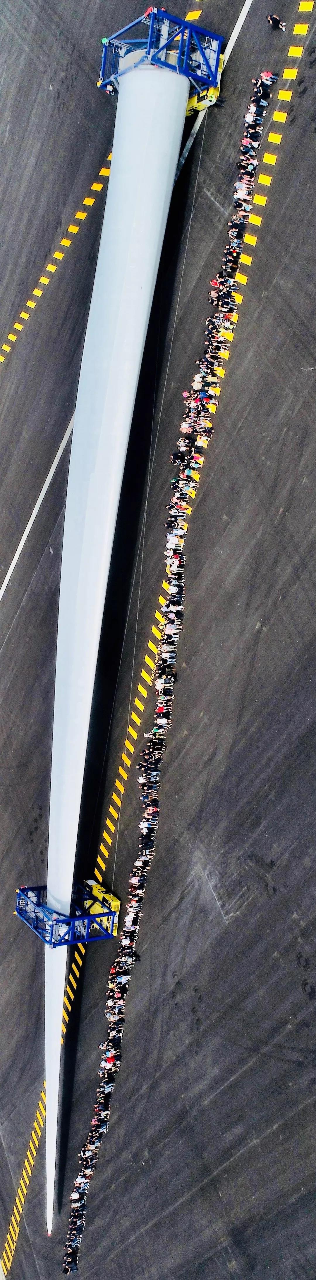 看起来并不能直观的感受它的长,107米的风机到底有多么长长长长长长的叶片呢?看下面↓↓