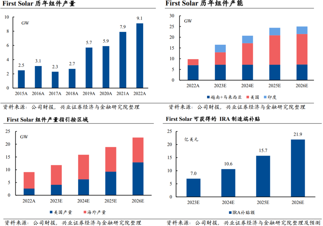 此前,该公司在美国、马来西亚、越南设有工厂。2020年以来,First Solar 先后投入41亿美元扩产,使其运营产能从6GW增长到2023年底的16GW,预计在2026年实现26GW的产能。