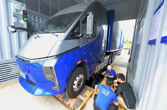 换电站采用骐骥换电技术全球首创的重卡底盘换电解决方案,能够实现不同品牌、不同车型的一站通换。苏源介绍,目前换电站已经与四家主流车企进行合作。