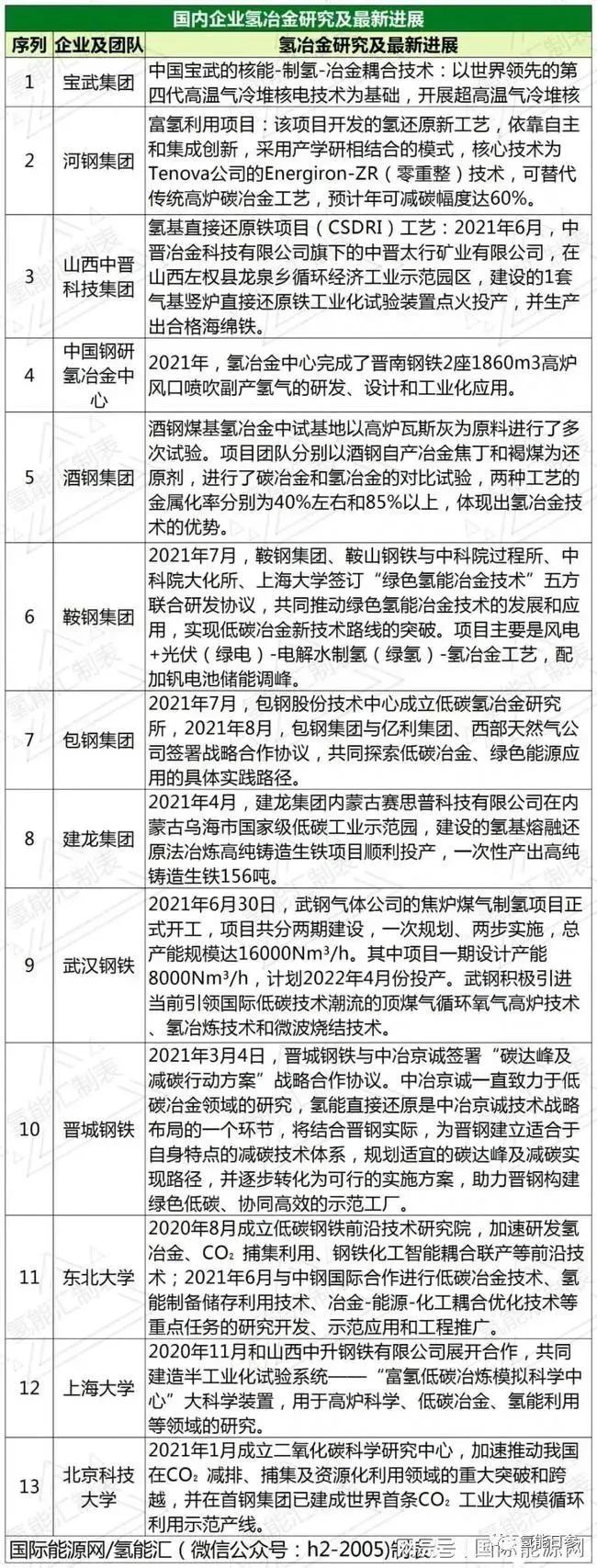 氢冶金因其巨大的减排潜力,已成为龙头钢企志在必得的制高点,国内外多家钢铁公司正在大力布局氢能冶金、绿氢制备和氢能供应等项目。从“碳冶金”到“氢冶金”,钢铁工业有望摘掉高碳排放、高污染、高能耗的帽子。